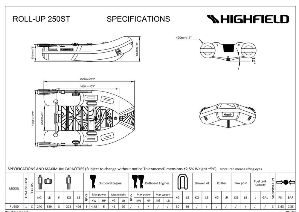 Maak kennis met de nieuwe Highfield Roll Up EasyGo250. Met een fris nieuw ontwerp is de EasyGo de perfecte opvouwbare, lichtgewicht tender. Het model is volledig gerestyled. Zo zorgt de EVA-foam antislip vloer voor extra comfort terwijl de donkerblauwe accenten de boot een moderne look geven. De Highfield Roll Up EasyGo tenders worden standaard uitgevoerd met sterke Valmex® PVC tubes voor een extra lange levensduur. Verder is de boot voorzien van een EVA bow step, aluminium spiegel, bungee straps en een uitneembare bank (voorzien van EVA foam). De hoogwaardige materialen, thermisch gelaste naden en marine-grade afwerking zorgen ervoor dat de EasyGO 250 aanzienlijk duurzamer is dan traditionele roll-up tenders.