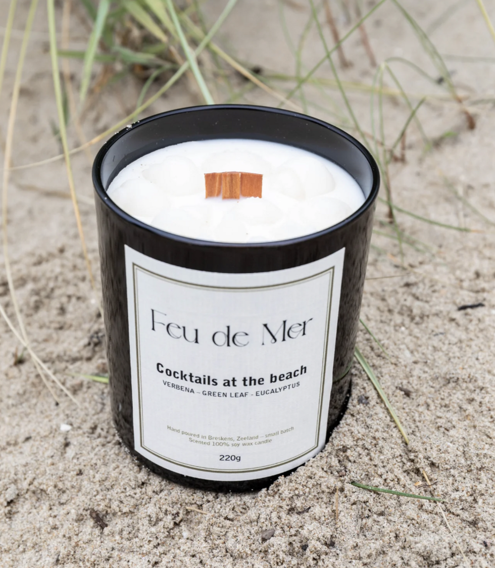 Breng de sfeer van de Zeeuwse kust in je huis met onze geurkaars 'Cocktails at the Beach'. Deze grote kaars maakt deel uit van de exclusieve signature collectie van het Nederlandse merk Feu de Mer en is geïnspireerd op de verfrissende raspberry daiquiri cocktail. De perfecte balans tussen zoete framboos en verfrissende citrus maakt deze geur onweerstaanbaar. Met de toevoeging van witte rum en een hint van gezoete siroop, ervaar je de ultieme cocktailervaring, waar je ook bent. Laat de frisse geur van limoen en citroen je zintuigen prikkelen en je meenemen naar een zonnige stranddag. Leuk om kado te geven!