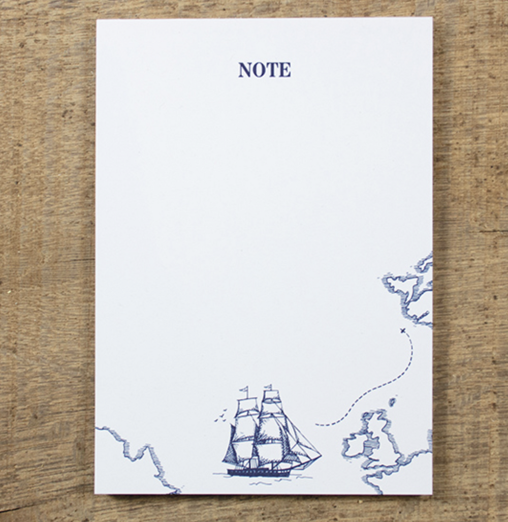 Notitieblokje voorzien van nautische print. Handig voor boodschappenlijstjes of een leuk berichtje. Het blok bestaat uit 50 vel gerecycled papier.